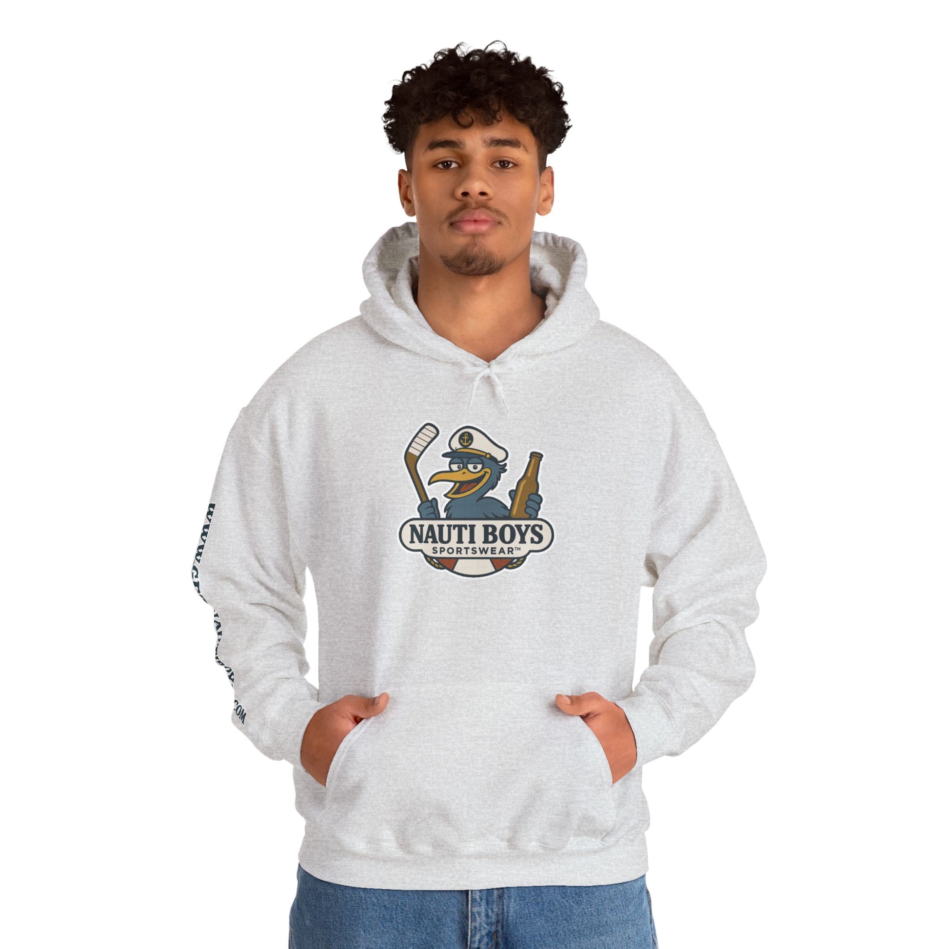 Nauti Boys 'Beer League' unisex Heavy Blend™ Hooded Sweatshirt has a coastal, fun, and slightly irreverent vibe perfect for those who love nautical themes, humor, and fishing culture. This classic fit shirt with a crew neckline is made with 100% ring-spun cotton, ensuring a lightweight and comfortable feel all year round.